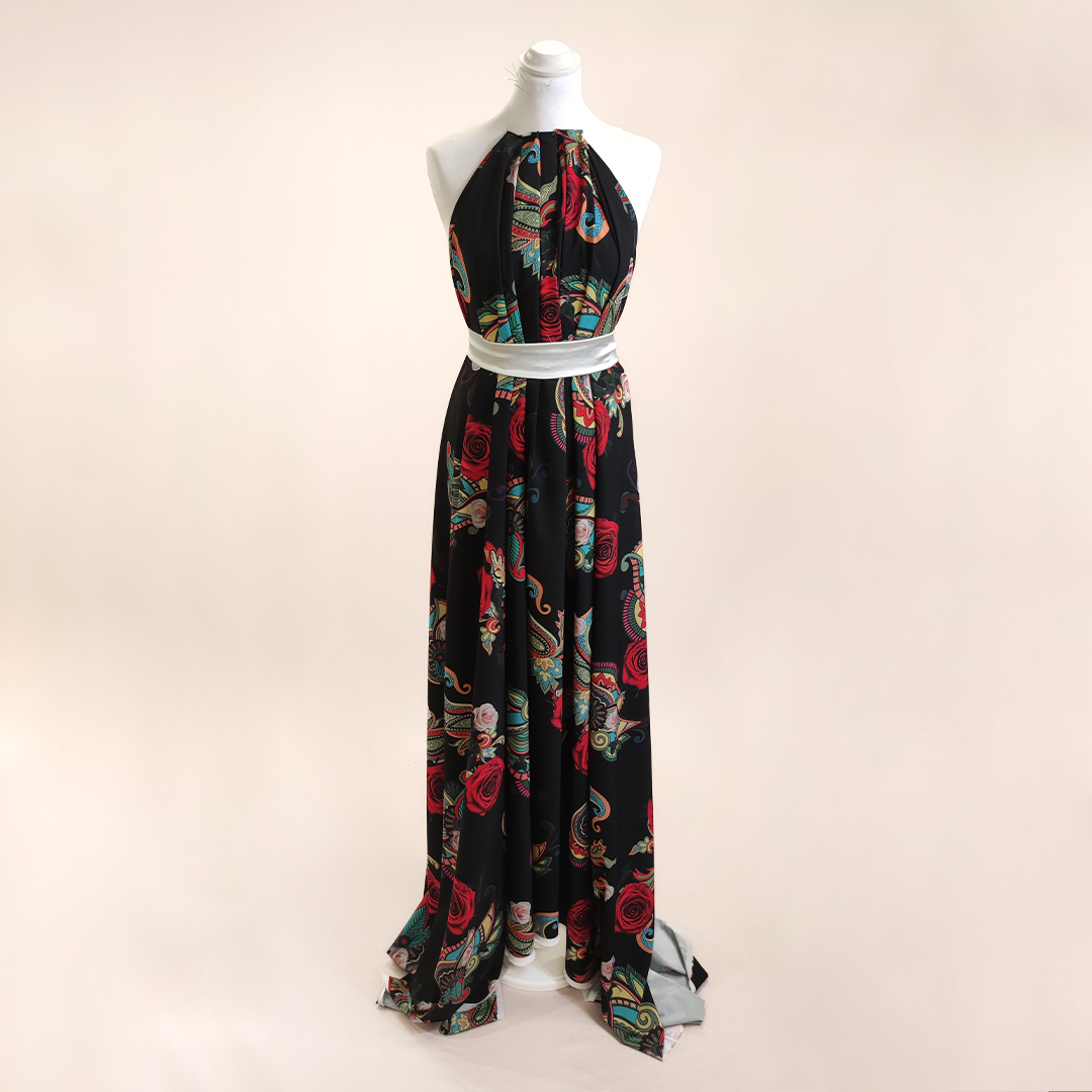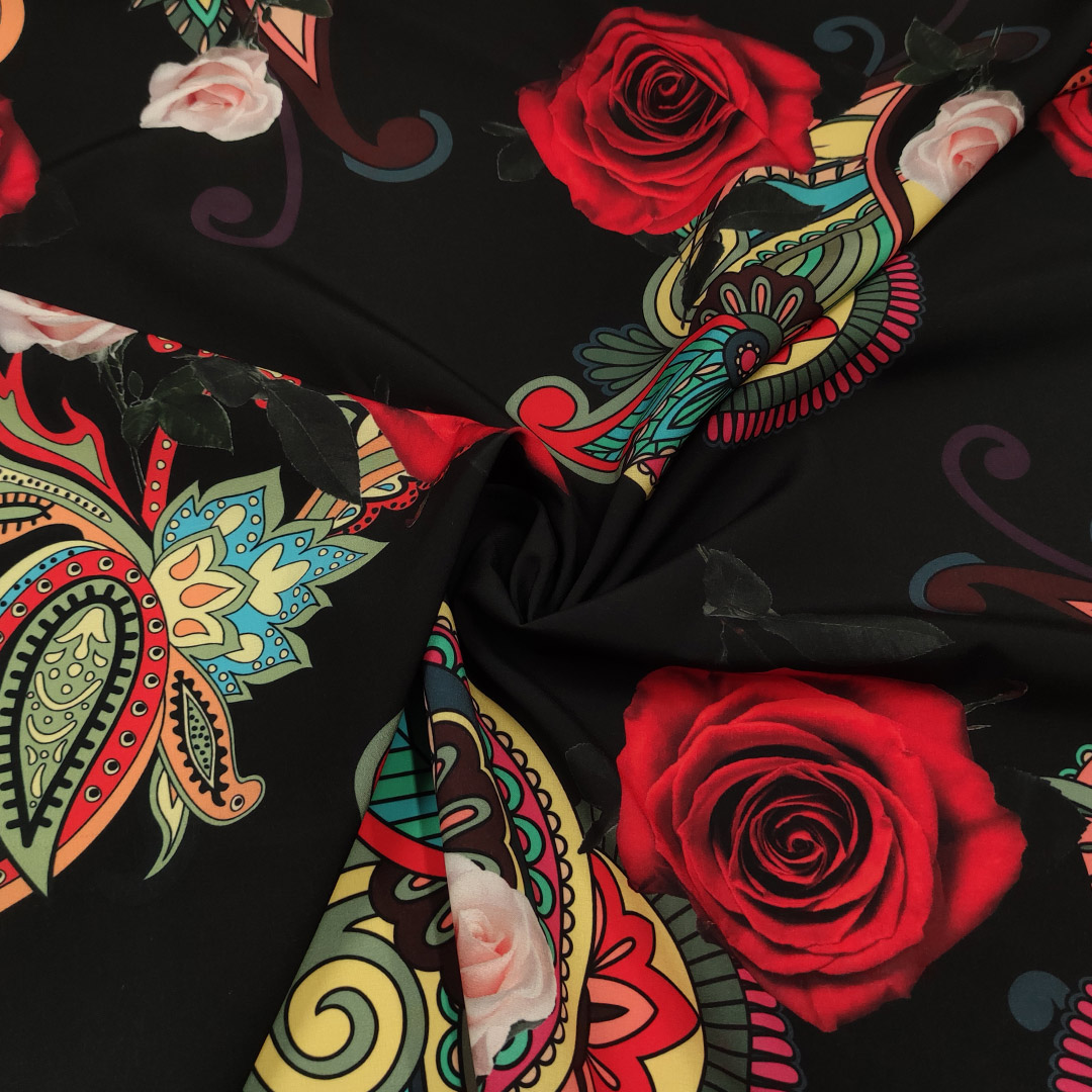 Tessuto Misto Viscosa a fantasia motivo floreale nero – rosso – giallo