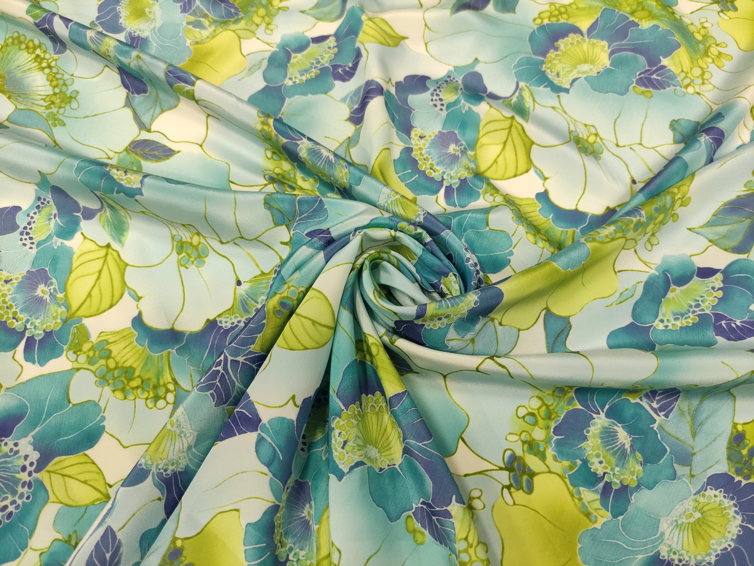 Tessuto Misto Viscosa a fantasia motivo floreale verde menta – celeste