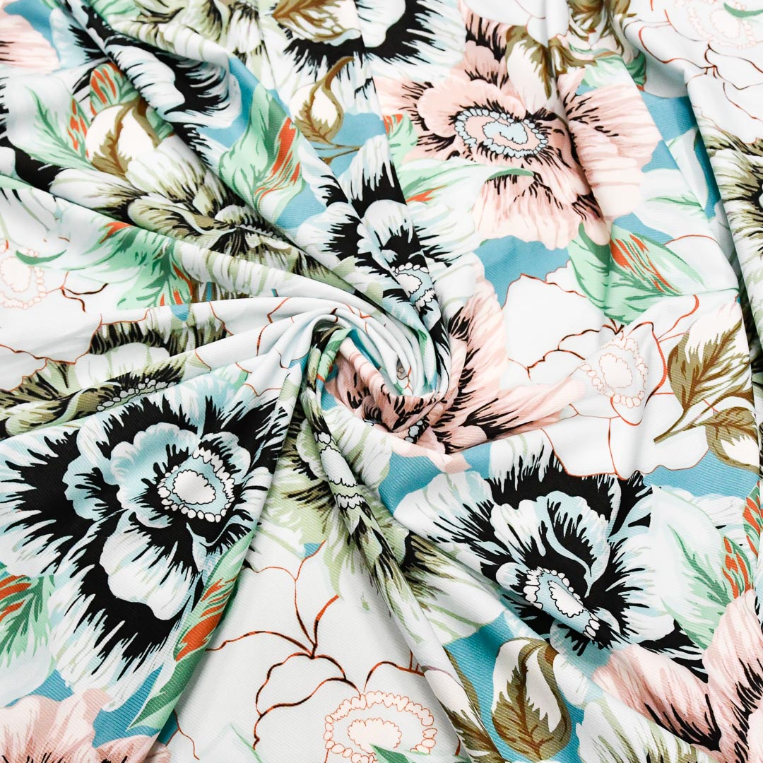 Tessuto misto Viscosa a fantasia dalla mano morbida e fluente, leggermente elasticizzato, ideale per realizzare capi freschi e comodi da utilizzare nella stagione Primavera-Estate.