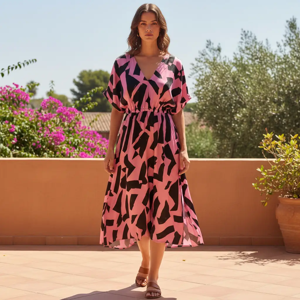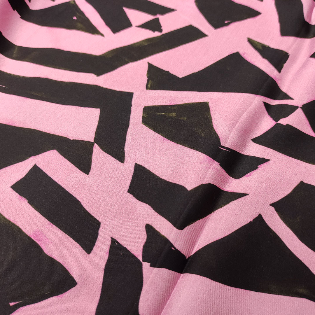 Tessuto Satin di Viscosa a fantasia motivo astratto pink – nero