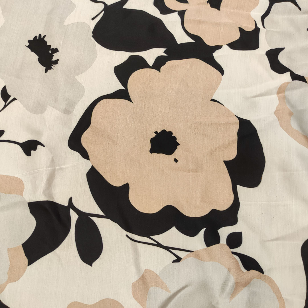 Tessuto Satin di Viscosa a fantasia motivo floreale bianco – perla – beige