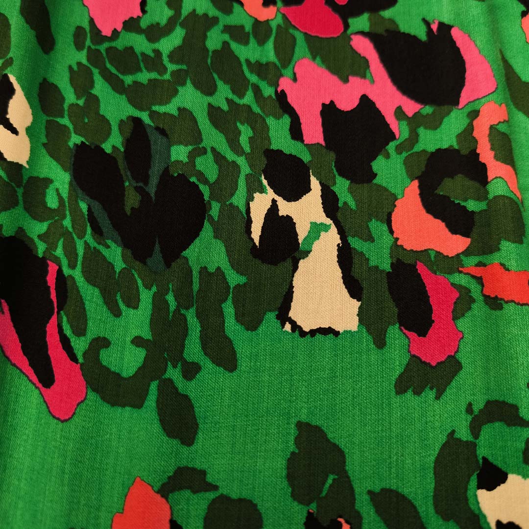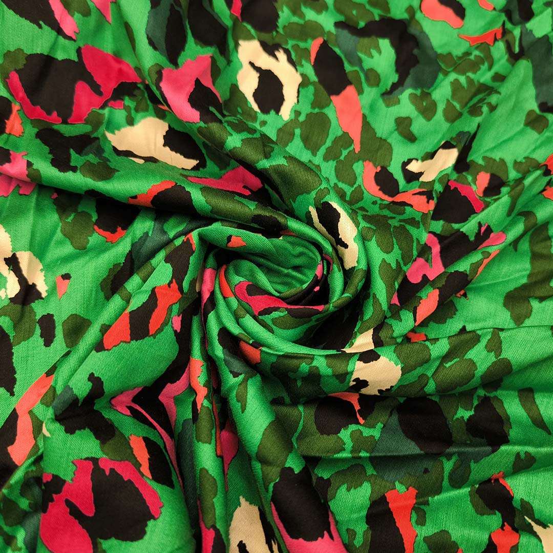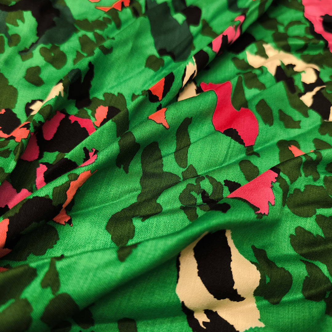 Tessuto Viscosa a fantasia motivo animalier verde smeraldo – nero – fucsia