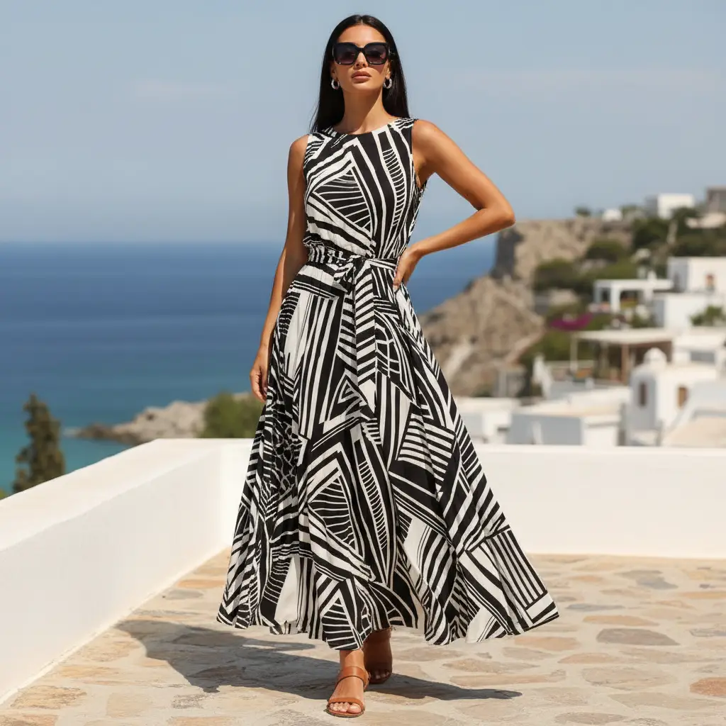 Tessuto Viscosa a fantasia motivo astratto nero – bianco