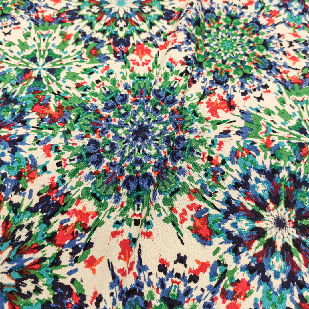 Tessuto Viscosa a fantasia motivo astratto verde – blu – rosso