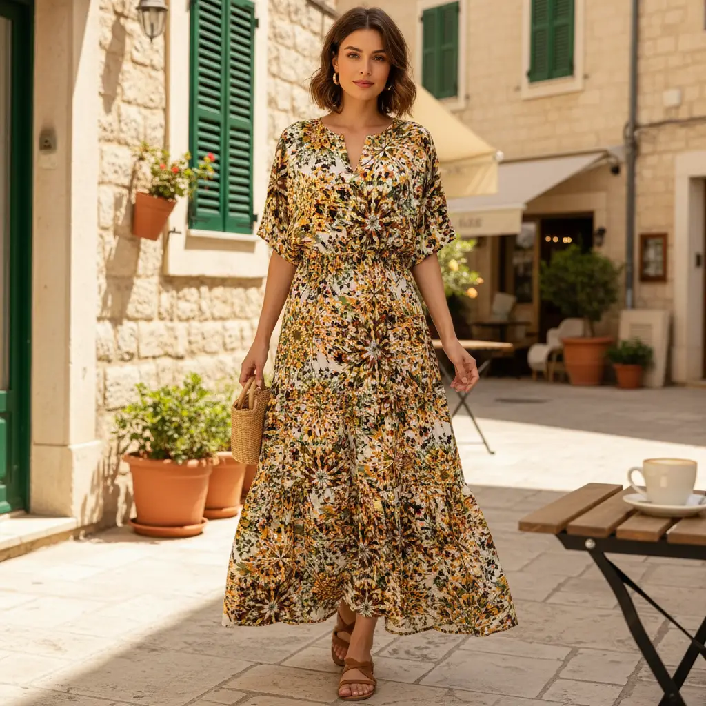 Tessuto Viscosa a fantasia dalla mano morbida e fluente ideale per realizzare capi freschi e comodi da utilizzare nella stagione Primavera-Estate.
