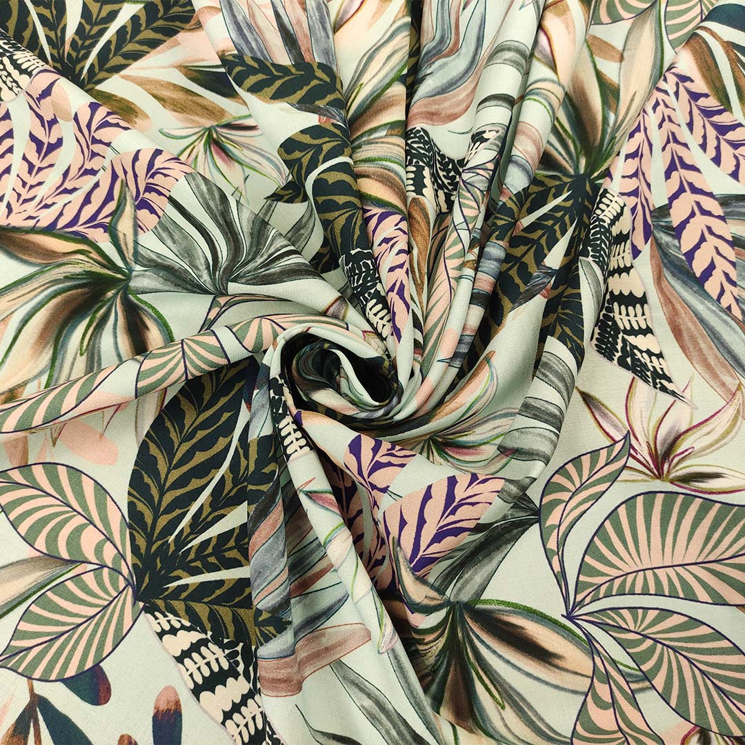 Tessuto Viscosa a fantasia dalla mano morbida e fluente ideale per realizzare capi freschi e comodi da utilizzare nella stagione Primavera-Estate.