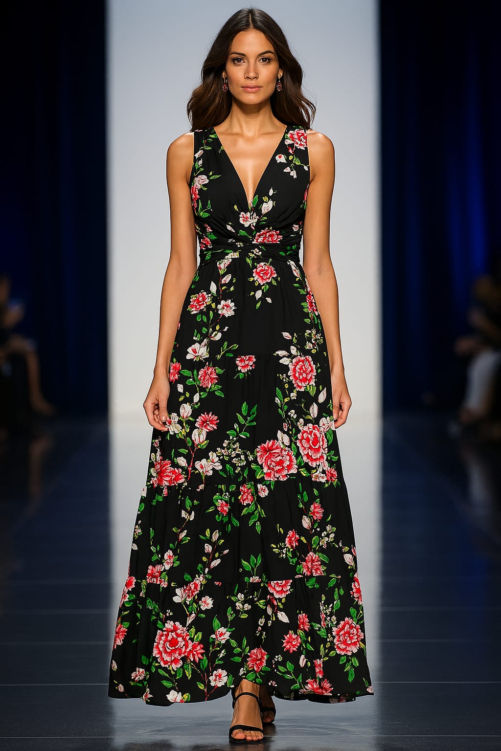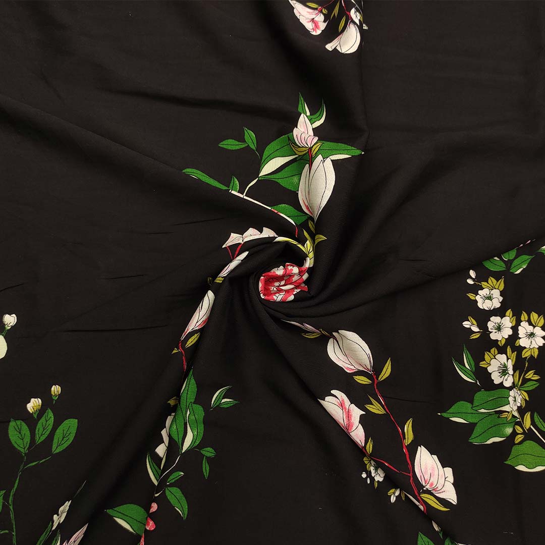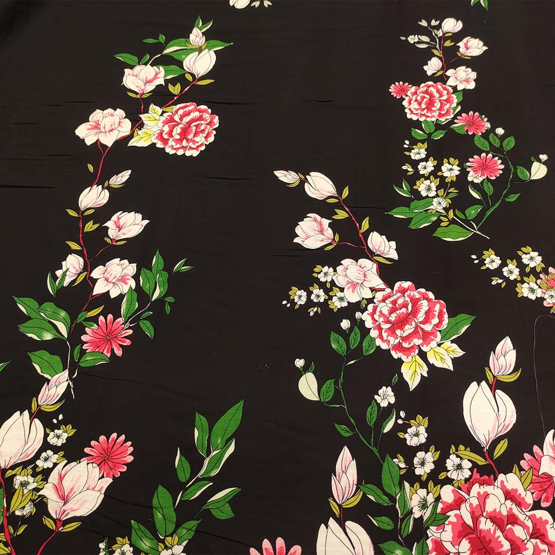 Tessuto Viscosa a fantasia motivo floreale ai bordi nero – verde – rosa