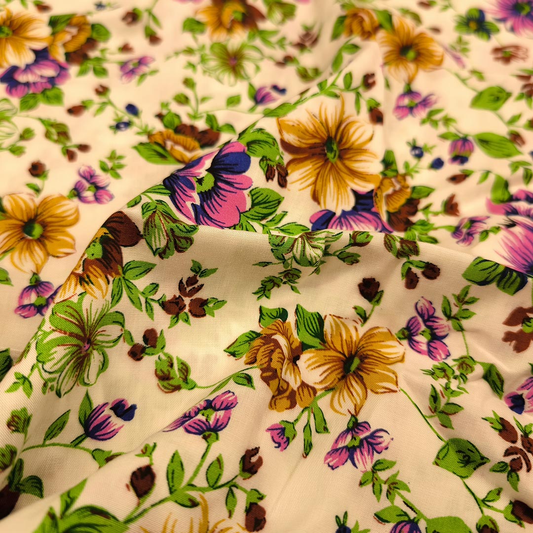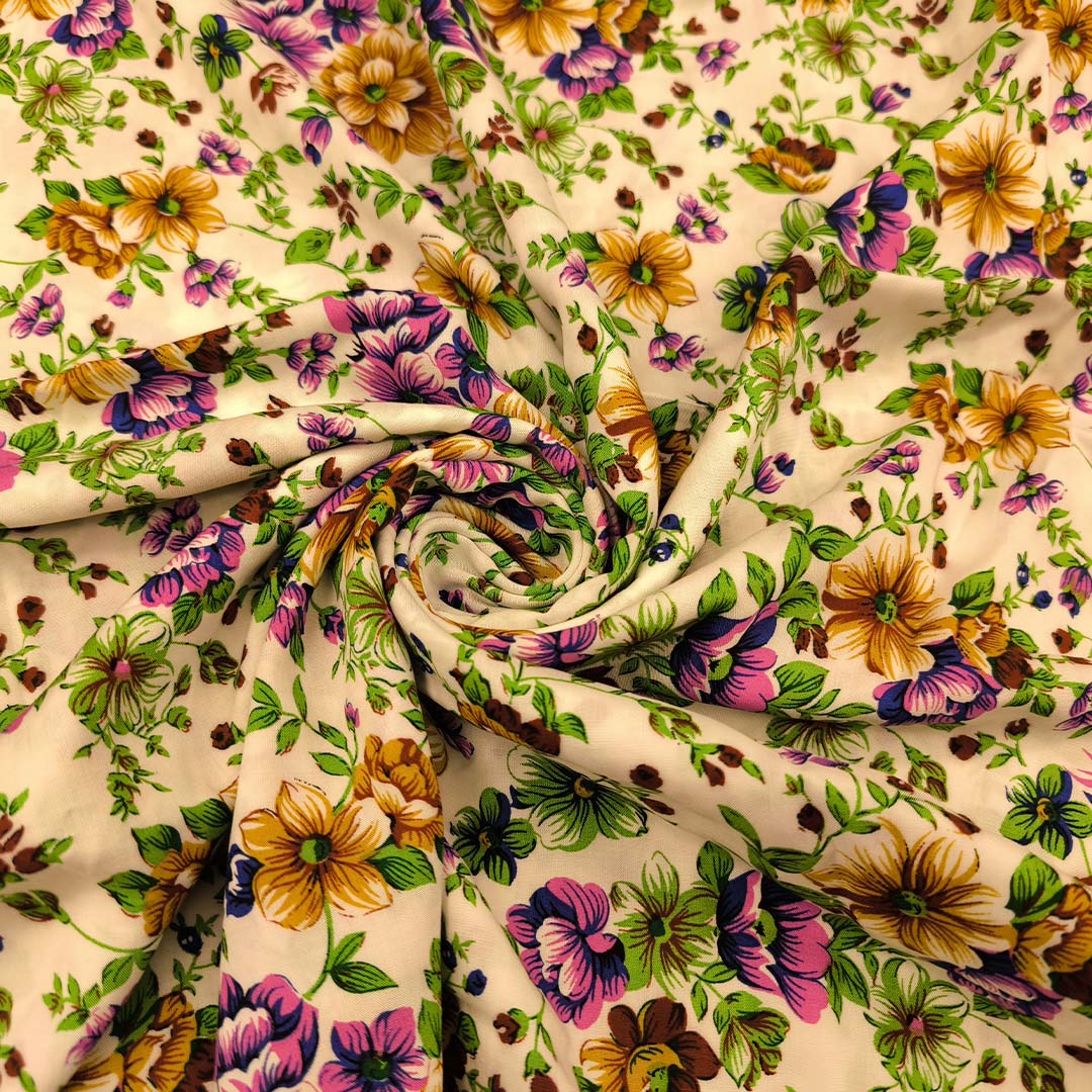 Tessuto Viscosa a fantasia motivo floreale ciclamino – verde – bianco