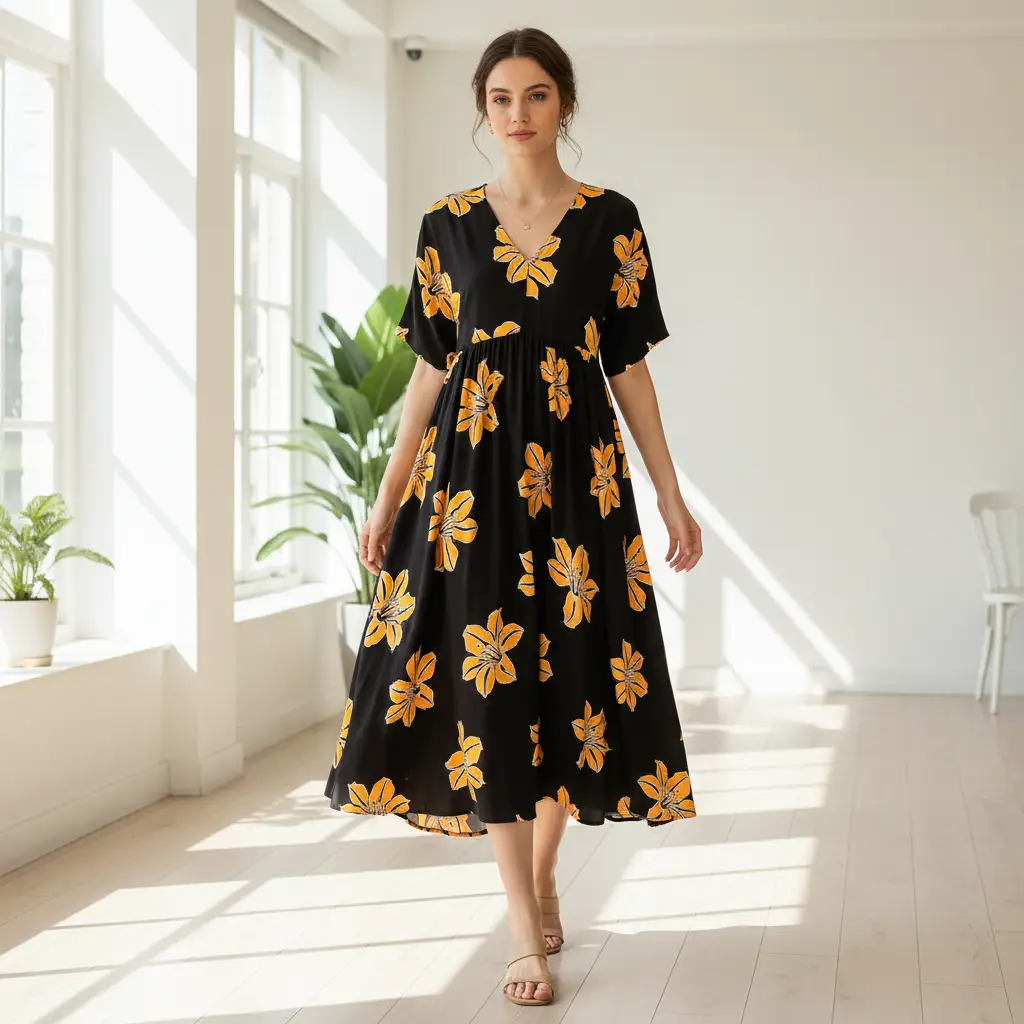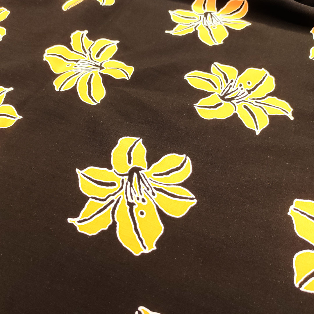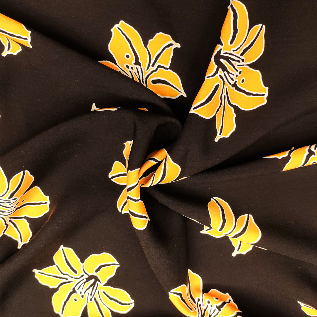 Tessuto Viscosa a fantasia motivo floreale nero – arancione