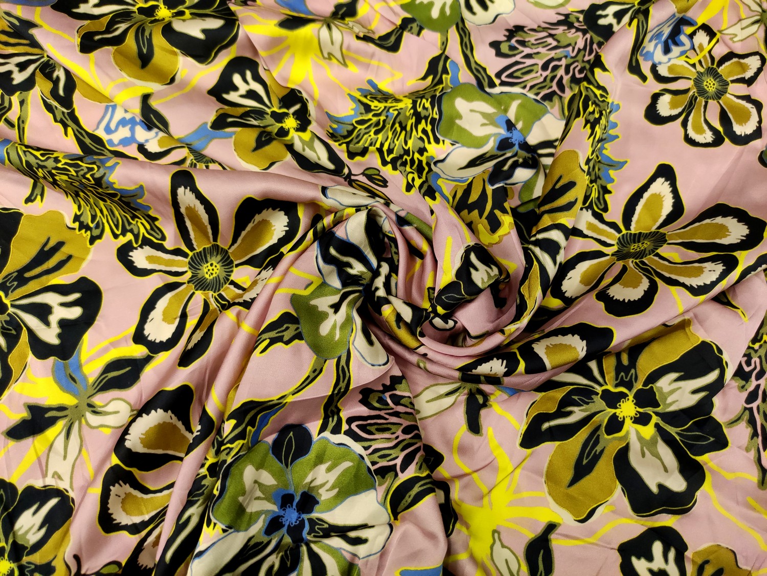 Tessuto Viscosa a fantasia motivo floreale rosa – giallo