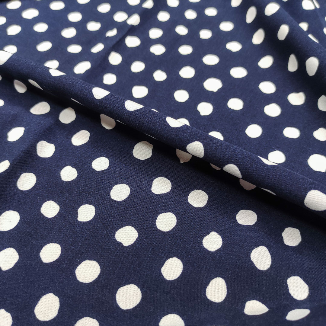 Tessuto Viscosa a fantasia motivo pois bianco – blu