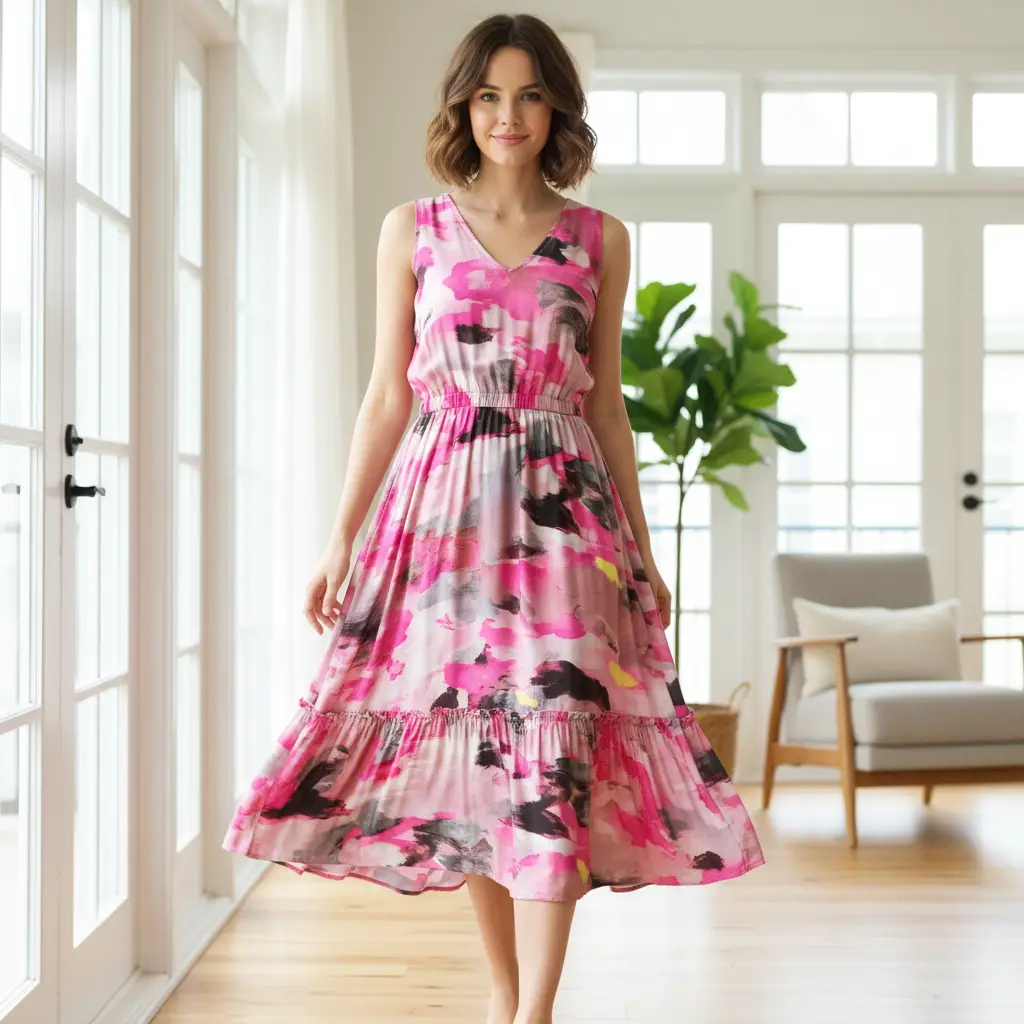 Tessuto Viscosa e lino a fantasia dalla mano morbida e fluente ideale per realizzare capi freschi e comodi da utilizzare nella stagione Primavera-Estate.