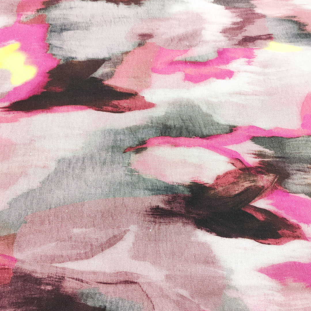 Tessuto Viscosa e lino a fantasia motivo astratto rosa – fucsia – grigio